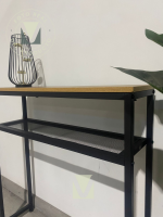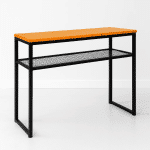 Cuenta con una estructura de metal resistente, que aporta estabilidad y durabilidad, además de un look urbano y contemporáneo. Su formato delgado lo hace perfecto para espacios reducidos, sin perder capacidad de apoyo ni estilo.