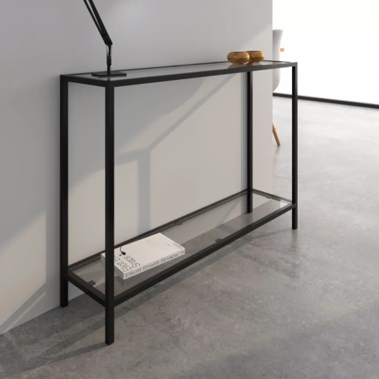 La superficie de vidrio templado no solo ofrece un acabado pulido y sofisticado, sino que también es resistente y fácil de limpiar, lo que la convierte en una opción práctica para el día a día. La estructura metálica proporciona estabilidad y un toque contemporáneo, mientras que su diseño limpio y moderno se adapta a una variedad de estilos decorativos. Perfecto para quienes desean añadir un toque de elegancia a su hogar sin sacrificar funcionalidad.