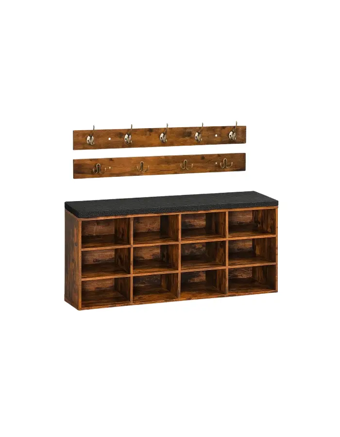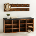 Ordena y decora tu entrada o dormitorio con este Banco Organizador con Zapatero y Perchero, una solución práctica y completa que combina funcionalidad y estilo rústico en un solo mueble.