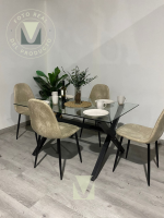 La mesa Detroit destaca por su diseño minimalista y liviano, ideal para comedores modernos. Su estructura de metal con acabado tipo madera aporta calidez visual y gran resistencia, mientras que su cubierta de vidrio añade un toque sofisticado y facilita la limpieza diaria. Gracias a su tamaño compacto, es una opción práctica y versátil para distintos ambientes.