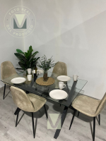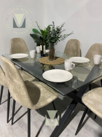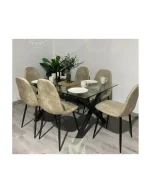 La mesa Detroit destaca por su diseño minimalista y liviano, ideal para comedores modernos. Su estructura de metal con acabado tipo madera aporta calidez visual y gran resistencia, mientras que su cubierta de vidrio añade un toque sofisticado y facilita la limpieza diaria. Gracias a su tamaño compacto, es una opción práctica y versátil para distintos ambientes.