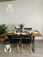 Una mesa que destaca por su diseño artesanal y su perfecta fusión entre lo natural y lo industrial.
