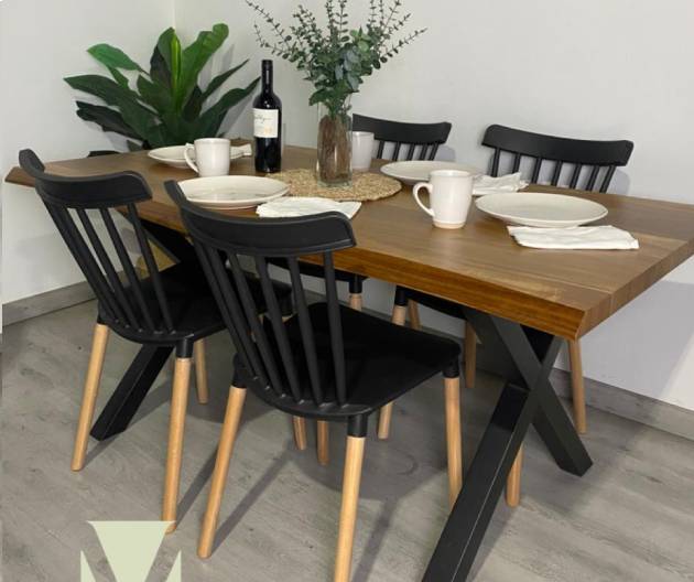 El Comedor Sur Rústico Windsor 4P combina la calidez del estilo rústico con la frescura del diseño nórdico, creando un espacio acogedor, moderno y lleno de personalidad. Su equilibrio entre materiales naturales y líneas simples lo convierte en una opción ideal para quienes buscan un ambiente con carácter y estilo.