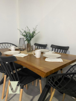 Con su estilo clásico y nórdico, las Sillas Windsor añaden frescura y ligereza al conjunto. Su diseño de varillas y líneas simples es un guiño al mobiliario escandinavo, combinando comodidad y estética natural.