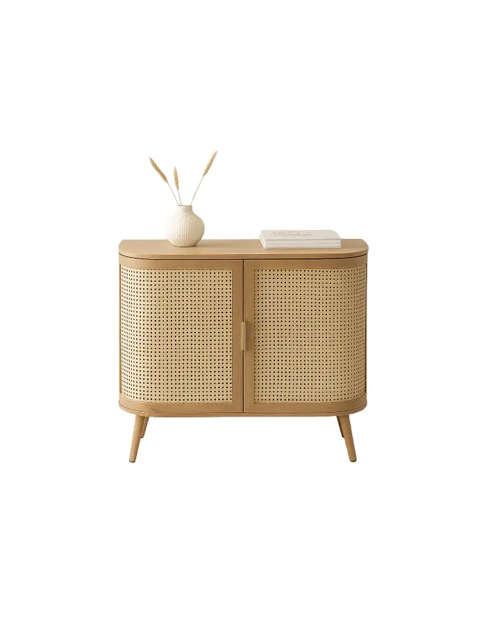 La Cómoda Siena Rattan en color natural combina diseño moderno y calidez en una pieza funcional ideal para cualquier espacio del hogar. Su estructura de MDF garantiza resistencia y durabilidad, mientras que los detalles en rattan sintético aportan textura y un estilo acogedor, perfecto para ambientes contemporáneos o de inspiración natural.