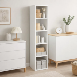 El Estante Eiry 5 es una excelente opción para quienes buscan mayor capacidad de organización sin perder un diseño moderno y funcional. Gracias a su formato vertical, permite aprovechar mejor el espacio, siendo ideal para living, dormitorios, oficinas o salas de estudio.