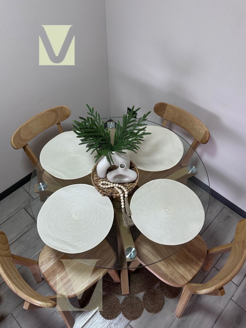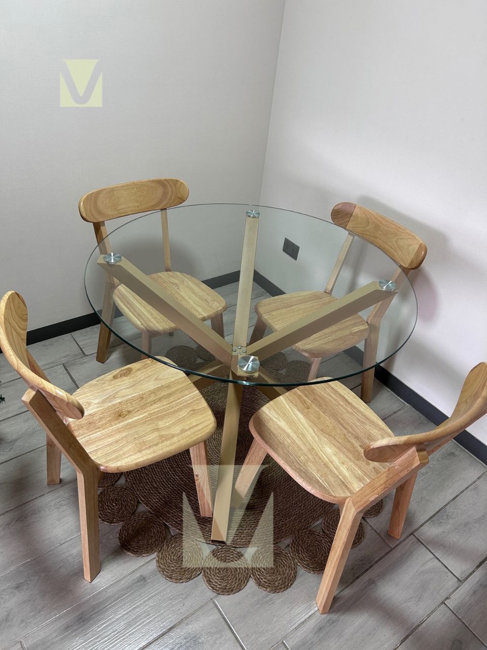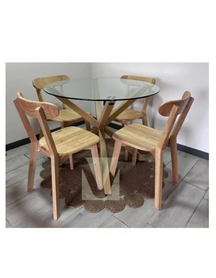 Aporta sofisticación y estilo contemporáneo a tu hogar con este elegante juego de comedor totalmente en color natural.