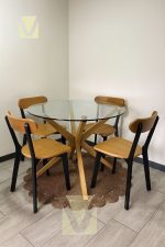 Por otra parte la mesa con su diseño exótico con base de acero inoxidable y detalle de madera con beta resaltada la convierten en una obra de arte única.