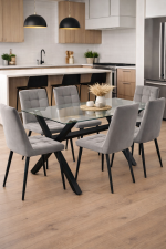 Las patas de metal con acabado de madera son una combinación perfecta de calidez y resistencia. Además, estas patas de metal garantizan que la mesa sea muy duradera y resistente, por lo que no tendrás problemas con su rendimiento a lo largo del tiempo. La cubierta de vidrio añade un toque de sofisticación adicional a la mesa y es muy fácil de mantener limpia.