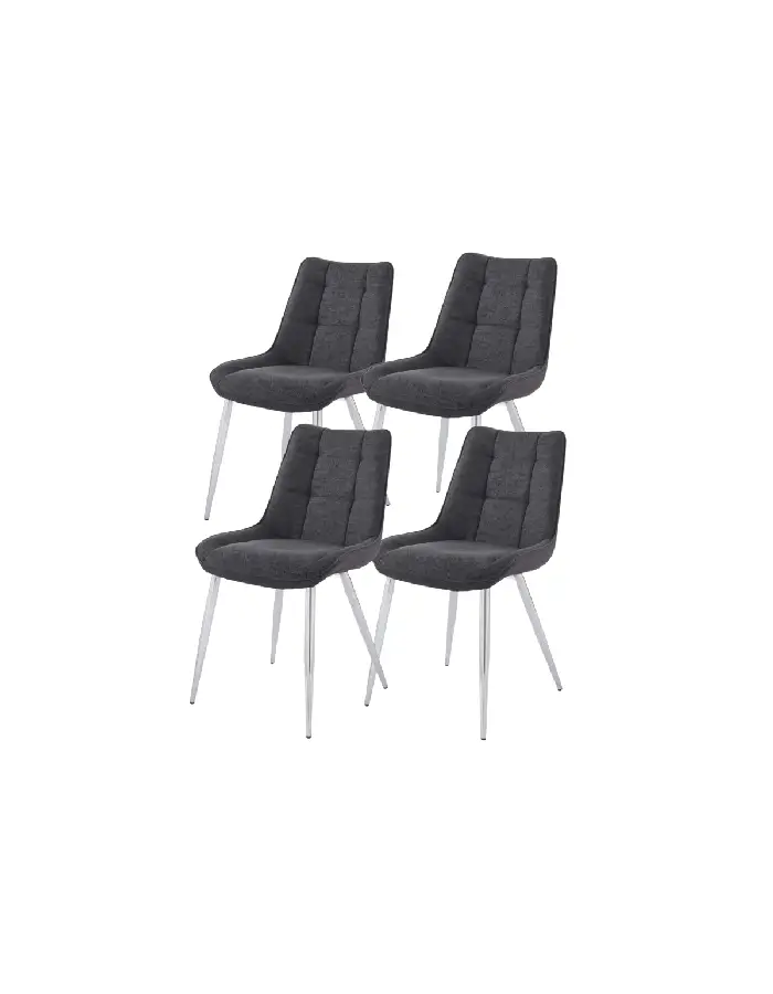 La Silla Arpi combina elegancia y confort en un diseño moderno y versátil. Su tapiz de lino rústico aporta textura y calidez, mientras que el cojín acolchado brinda una experiencia de asiento cómoda para el uso diario. Las patas de metal con pintura plateada añaden un toque contemporáneo y aseguran gran estabilidad y resistencia.