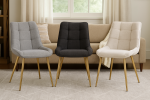 La Silla Arpi combina elegancia y confort en un diseño moderno y versátil. Su tapiz de lino rústico aporta textura y calidez, mientras que el cojín acolchado brinda una experiencia de asiento cómoda para el uso diario. Las patas de metal con pintura que simulan a la madera añaden un toque contemporáneo y aseguran gran estabilidad y resistencia.