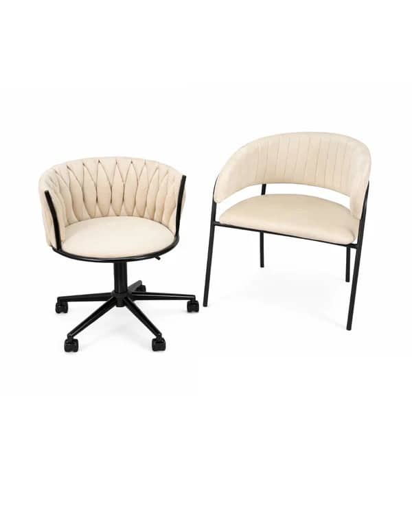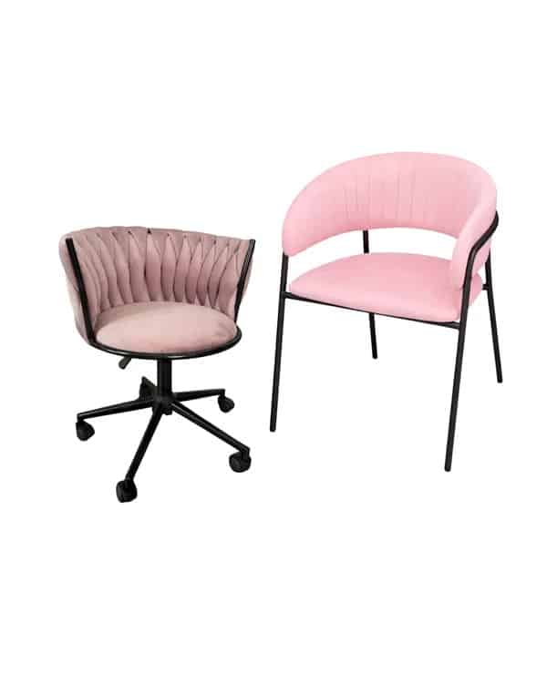 Disponible en formato pack junto a la silla Royal Queen Velvet con ruedas, es perfecta para áreas de trabajo como estudios de belleza, manicure o espacios creativos. Su estructura metálica en color negro asegura estabilidad y durabilidad, creando un contraste moderno con su tapizado suave al tacto.