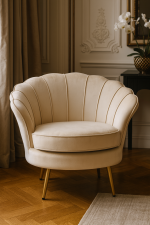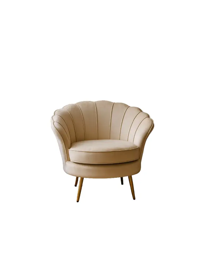 Eleva tus espacios con esta elegante poltrona de diseño tipo concha, perfecta para salas de estar, rincones de lectura, dormitorios o espacios de belleza. Su forma envolvente y su tapizado en felpa suave entregan una sensación de comodidad absoluta, mientras que su estructura firme asegura soporte y durabilidad.