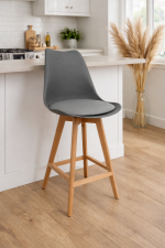 Asiento ergonómico tapizado en eco cuero, fácil de limpiar y cómodo para el uso diario. Estructura de polipropileno y patas de madera de haya que aportan estabilidad y firmeza.