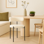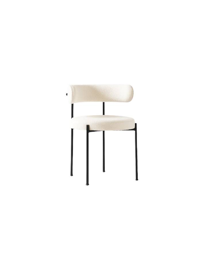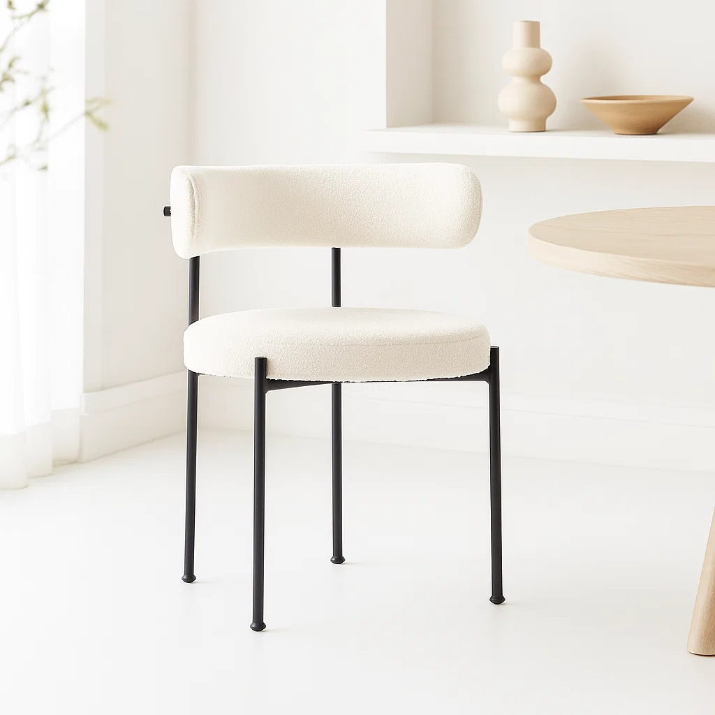 Dale a tus espacios un toque acogedor y moderno con la Silla Teddy, diseñada para combinar estilo, textura y comodidad. Su asiento y respaldo tapizados en tela tipo teddy aportan una suavidad envolvente, mientras que las patas metálicas negras ofrecen estabilidad y un contraste elegante que realza cualquier ambiente, ya sea en tu comedor, living u oficina.