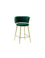 Añade un toque de sofisticación a tus espacios con este taburete de diseño exclusivo. Su asiento y respaldo tapizados en suave tela terciopelo, con acabado capitoné, ofrecen comodidad y estilo en cada detalle. La estructura metálica en tono dorado brinda resistencia, estabilidad y un acabado moderno y lujoso.