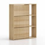 Fabricado en madera resistente, este zapatero combina durabilidad con un estilo elegante en color negro que se adapta fácilmente a distintos estilos de decoración. Cuenta con 3 espacios de almacenamiento y 3 estantes, permitiendo guardar varios pares de zapatos de forma ordenada y protegida.